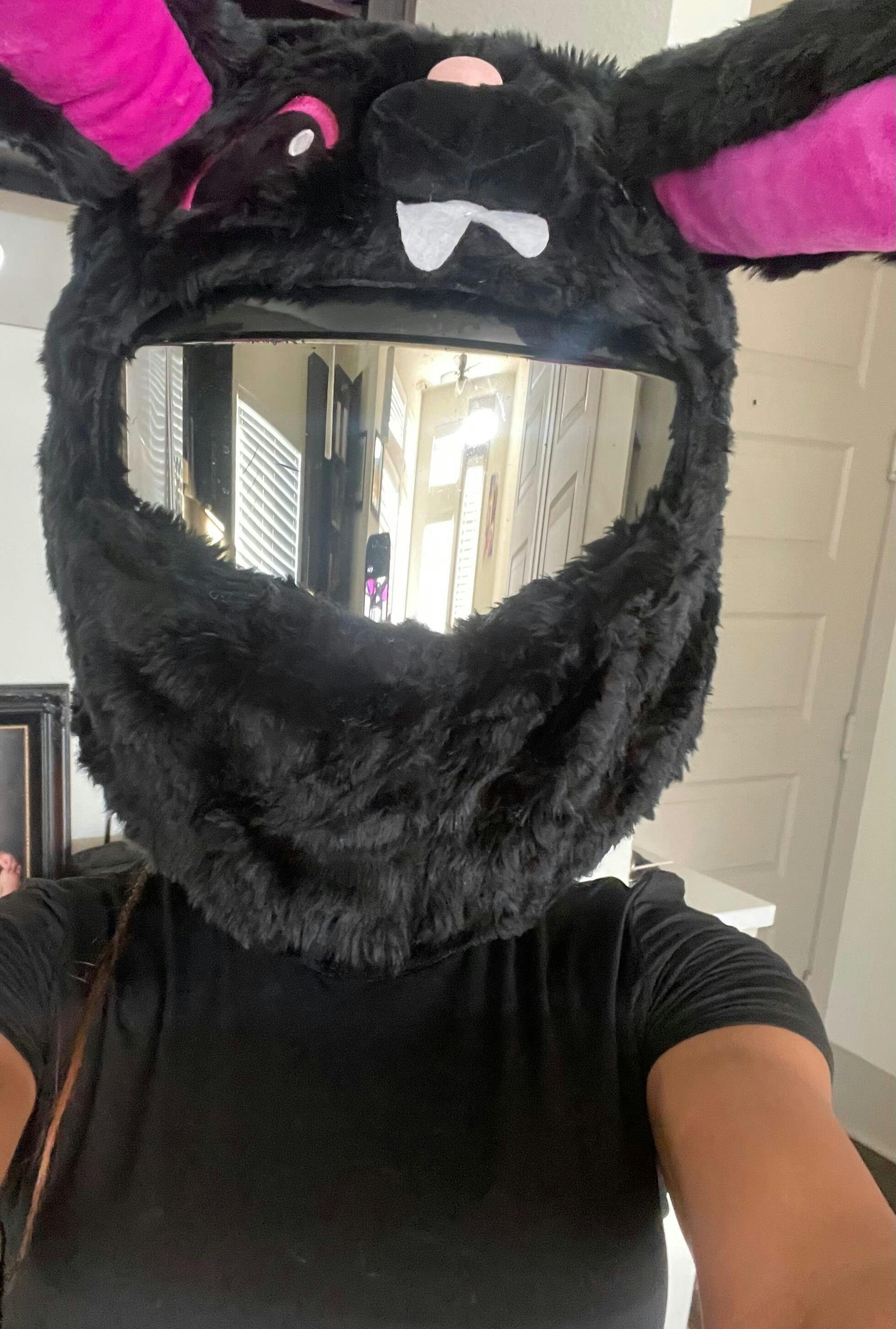Add some adorable charm to your ride with the back and pink bunny motorcycle helmet cover! This fun and unique accessory features a detailed design of a back and pink bunny, complete with large ears and cute eyes.