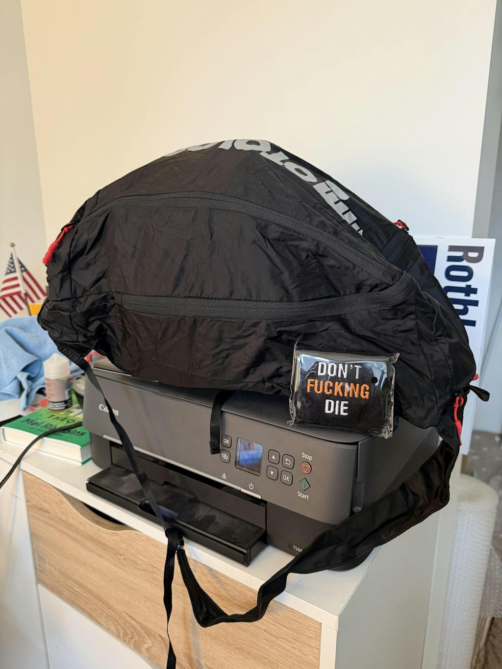 I like this bag a lot. It’s comfy, and seems well made, and easy to stuff itself into itself.