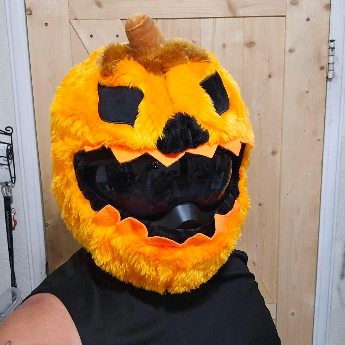 Your evil pumpkin motorcycle helmet cover will not only turn heads but will also protect your expensive lid from dust, scratches and chipping!