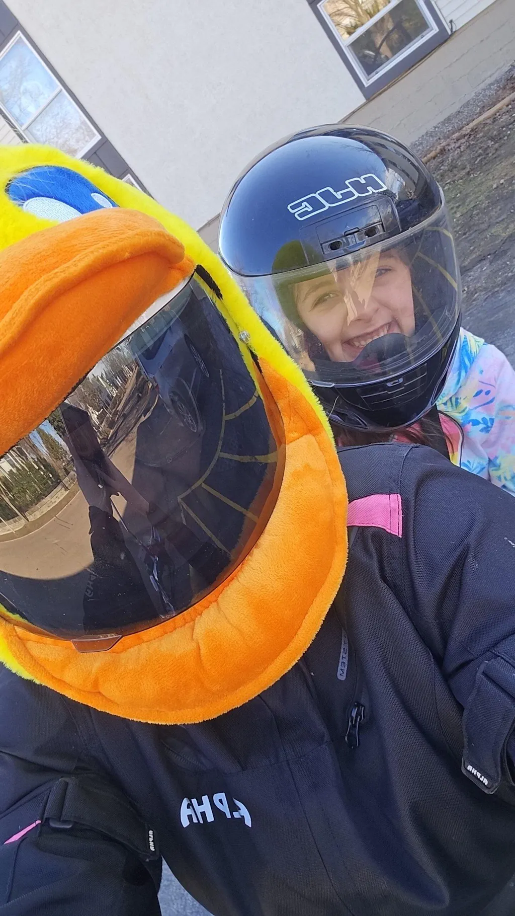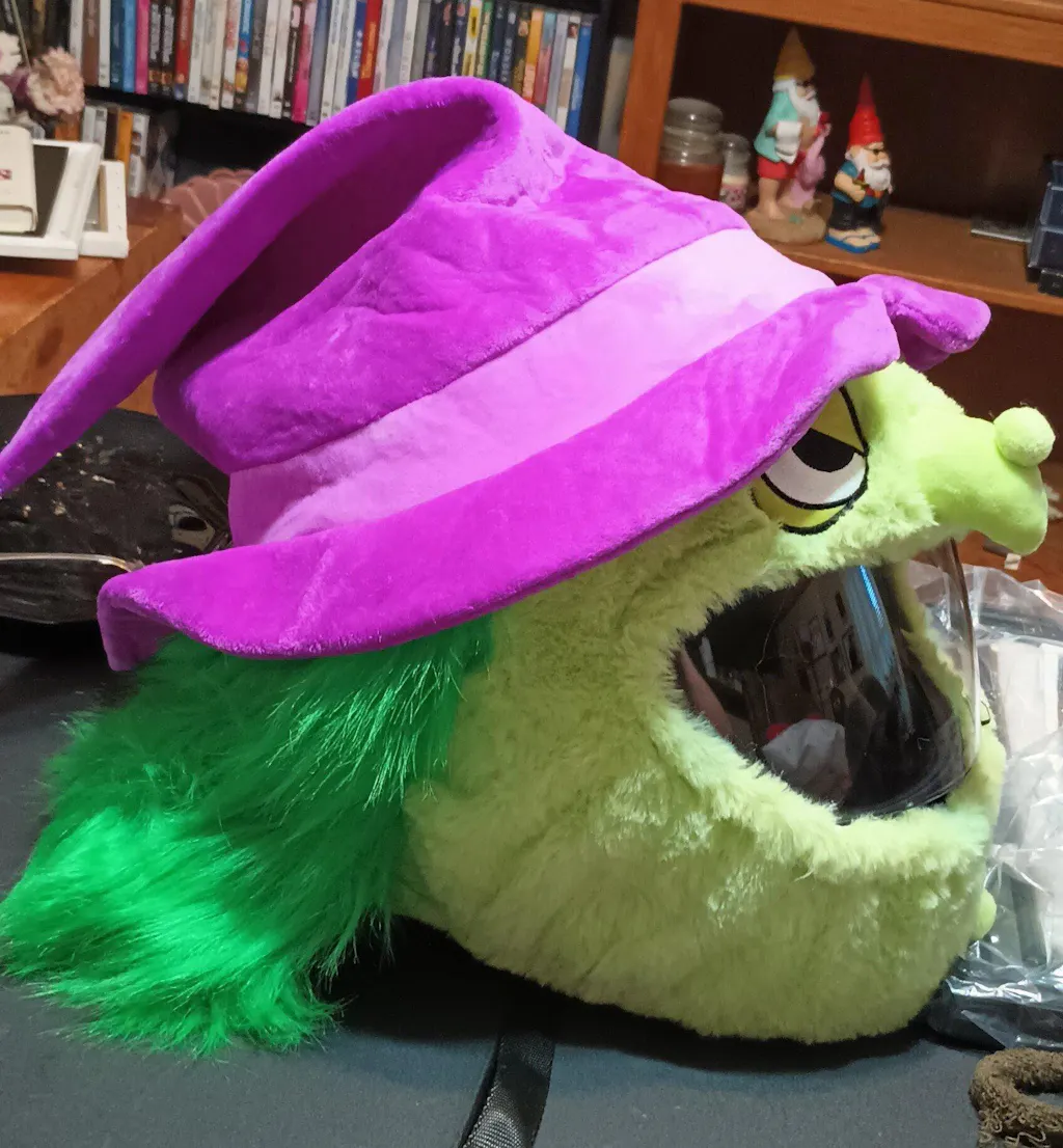 Got the green puppet helmet cover. Every where i go no matter where every smiles when they see me. Waving cheering and filled with excitement