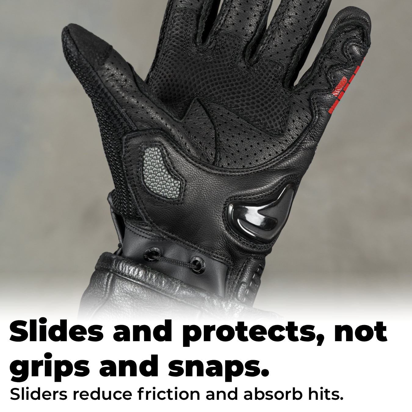 - Slides and protects, not grips and snaps. Palm sliders and knuckle armor protect your hands from friction and impact during a fall.