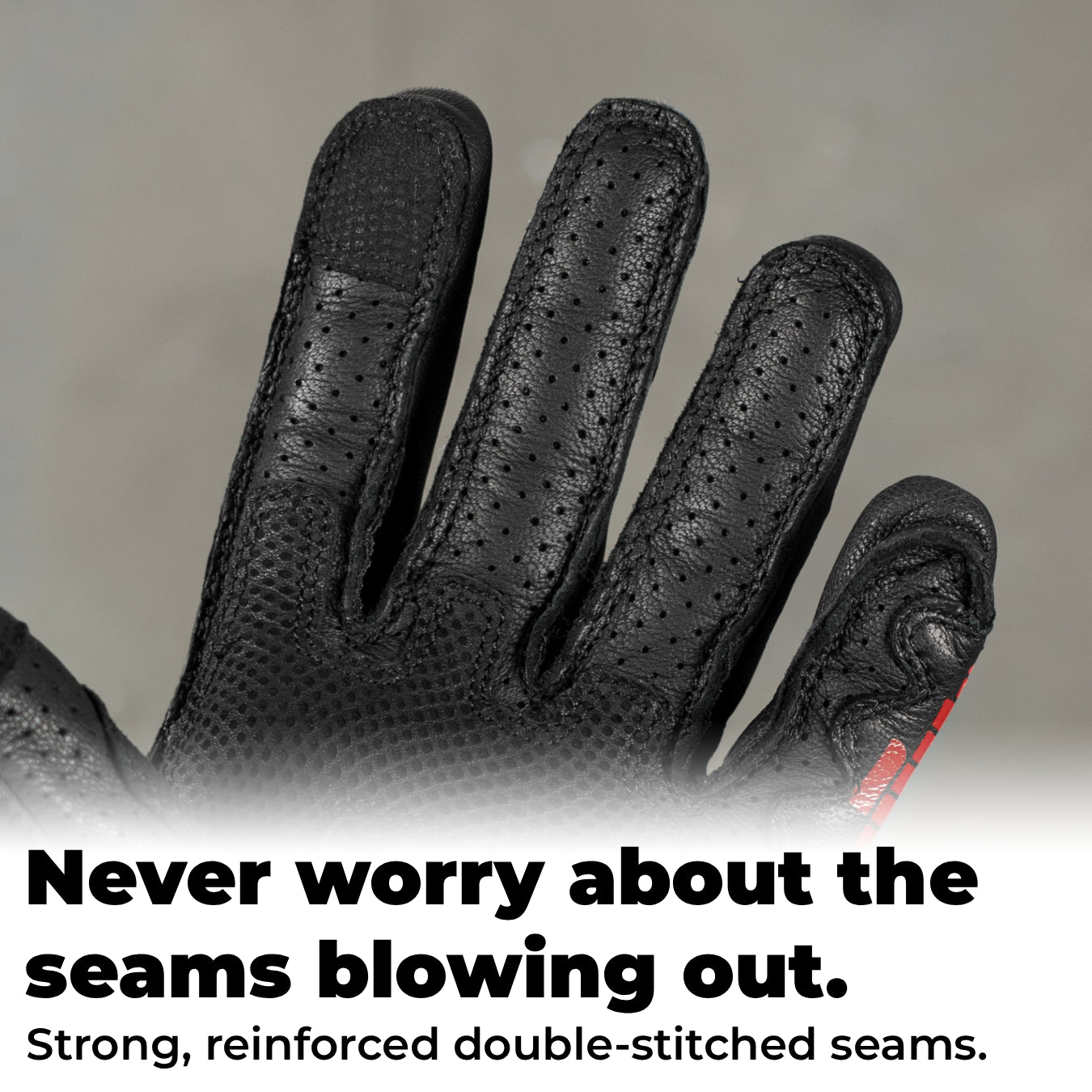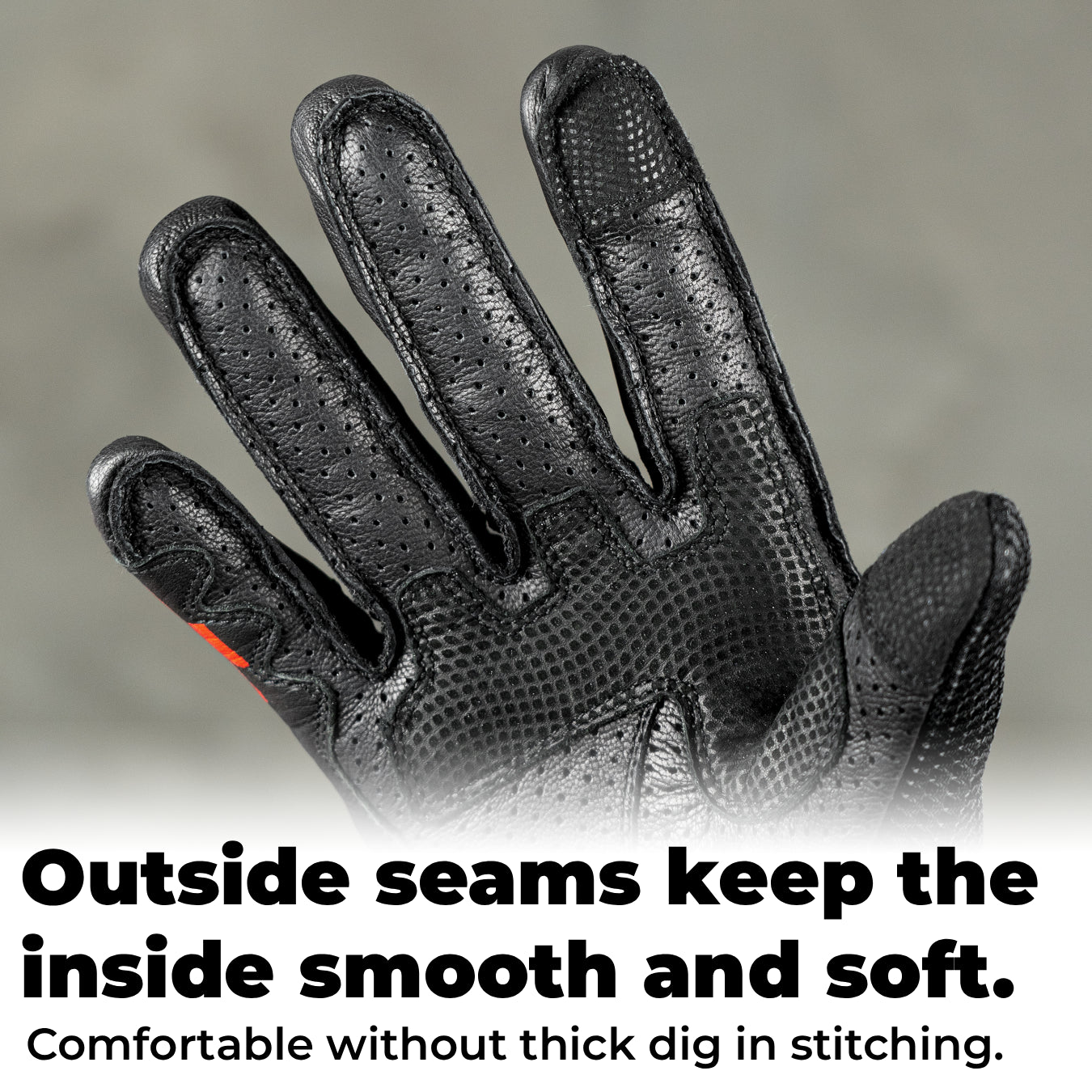 - Cooler hands, less sweat. Breathable mesh between the fingers and perforated leather palms, helps airflow and keeps your hands dry and comfortable.