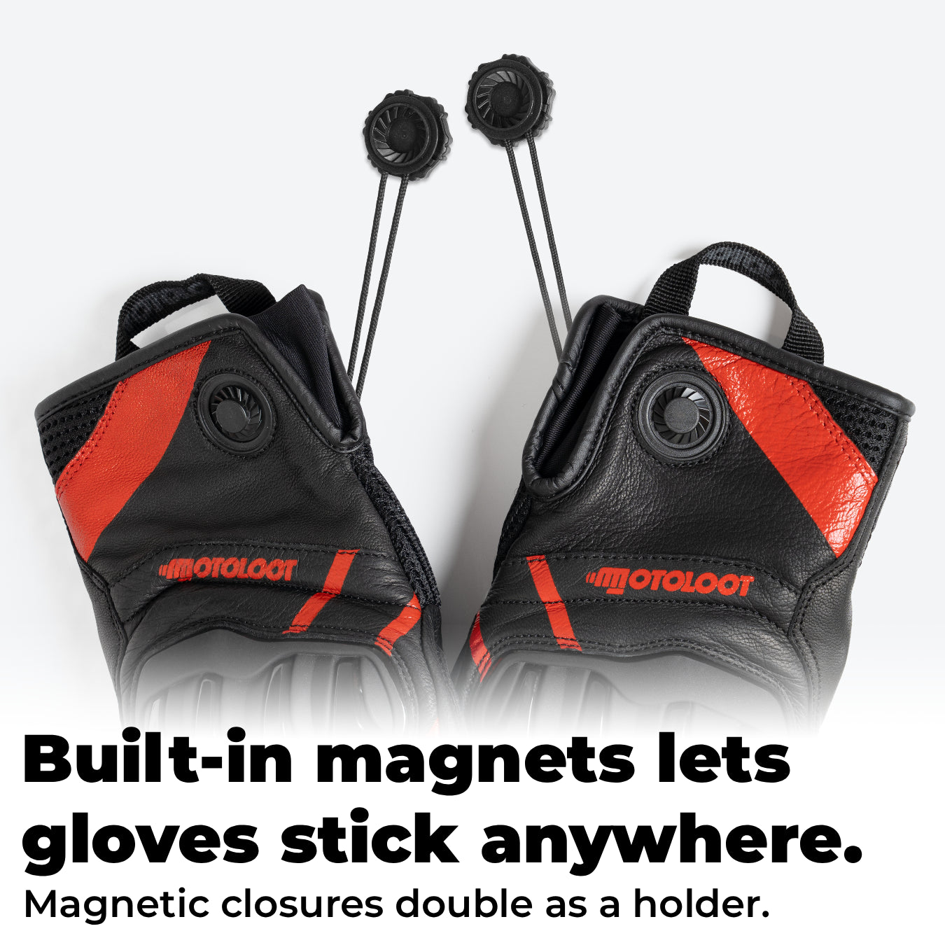 - Stick them anywhere metal. Built-in magnets let you hang your gloves on your tank, toolbox, rack, or tailgate.