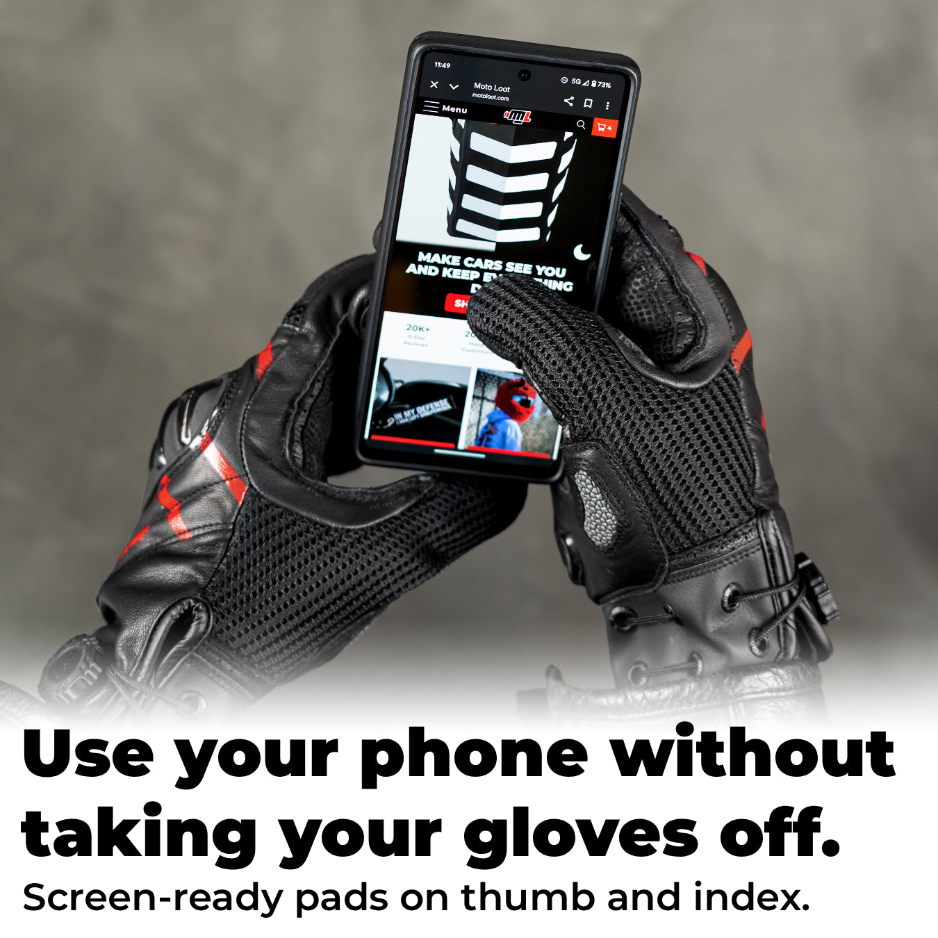 • Keeps hands cooler: Perforated leather and breathable mesh panels increase airflow and reduce sweat.